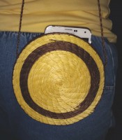 Hello sunshine! If you want a bright yellow accessory for summer, this could be your purse/cell phone carrier. With a diameter of 6.5 inches, it is large enough to hold either a small phone or compact and lipstick. It is very light weight and finely hand crafted. Each of these woven items is completely handmade and therefore no two are exactly the same. When you order it, it goes out of stock!